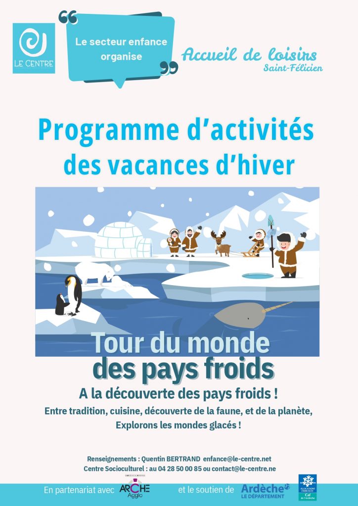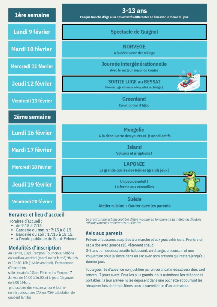 Veuillez trouver le programme du Centre de Loisirs de St Félicien pour les vacances d’hiver