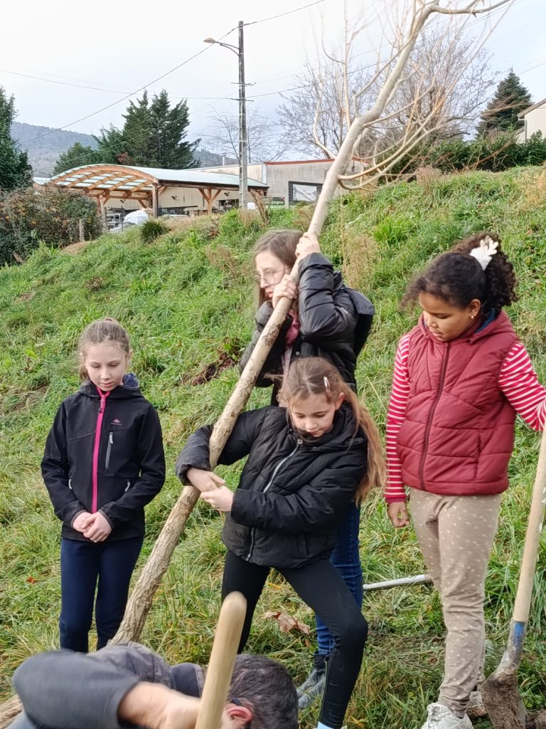 Une partie du Conseil Municipal des jeunes était réunie pour aider à planter 5 arbres au city park. Trois micocouliers, un bouleau et un saule apporteront un peu de fraîcheur en été.
