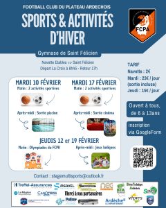 Le FC Plateau Ardéchois organise ses journées sport et activités pendant les vacances de Février !