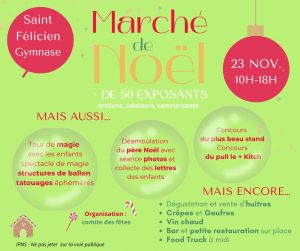 Le marché de noël aura lieu le dimanche 23 novembre dans le gymnase de Saint Félicien.