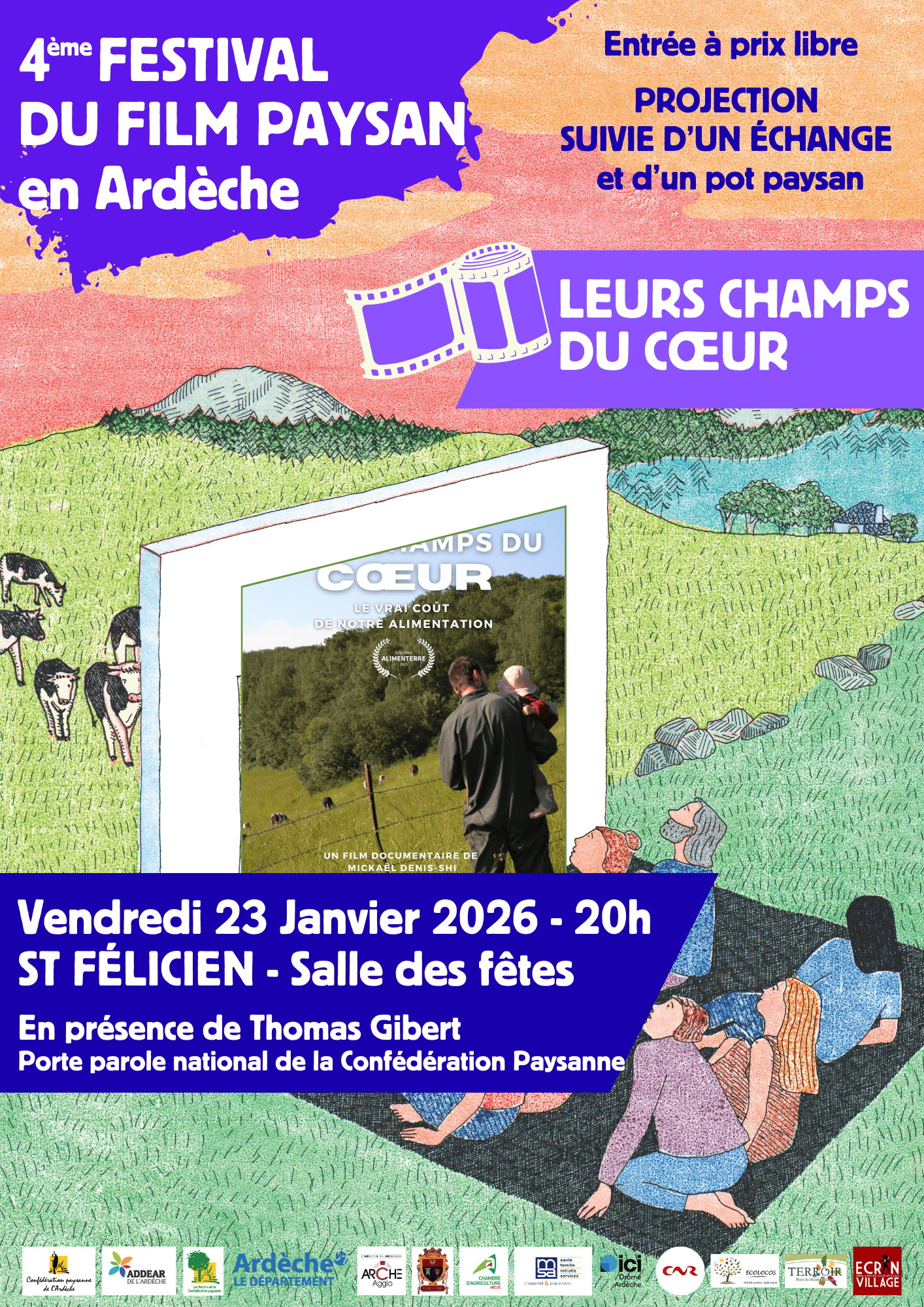 La 4ème édition du Festival du film paysan se déroulera du 16 au 25 Janvier 2026 A cette occasion la projection du film" "LEURS CHAMPS DU COEUR" aura lieu à…