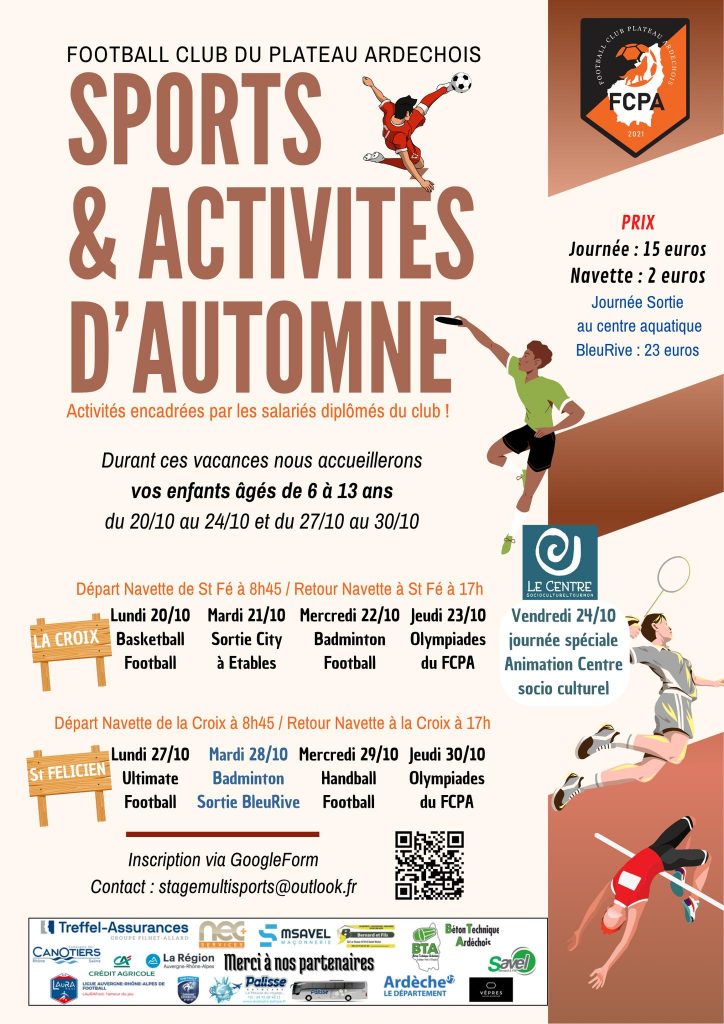 Le FC Plateau Ardéchois organise ses journées sport et activités pendant les vacances d’automne !