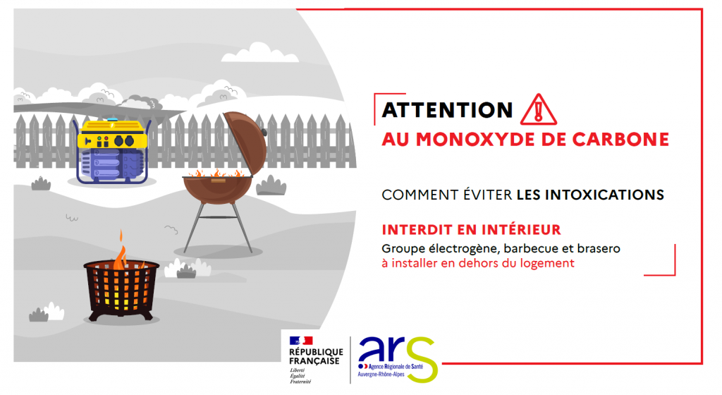 | Une augmentation significative des intoxications en 2024 Le monoxyde de carbone est un gaz invisible, inodore et très toxique. Alors qu’on compte en moyenne 300 personnes intoxiquées chaque année en Auvergne-Rhône-Alpes, le nombre de cas a augmenté significativement en 2024. Ainsi les 178 épisodes d’intoxication recensés ont concerné 692 personnes (contre 336 en 2023). Plus de la moitié a été hospitalisée et 3 sont malheureusement décédées. Ces intoxications touchent majoritairement des particuliers et sont le plus souvent d’origine accidentelle. Elles surviennent principalement durant la période de chauffage et sont généralement liées à : · un mauvais fonctionnement d’un appareil de combustion (chaudière, poêles, etc.) ; · l’usage prolongé d’un chauffage d’appoint non électrique ; · l’usage détourné d’appareils de cuisson pour se chauffer ; · l’utilisation à l’intérieur de locaux de groupes électrogènes, braséros, barbecues, ou d’outils à moteur thermique (tronçonneuses) ; · un manque de ventilation ou l’obstruction des grilles d’aération. Depuis le début de la période de chauffe cette année, 42 épisodes d’intoxications ont été déclarés à l’ARS. |